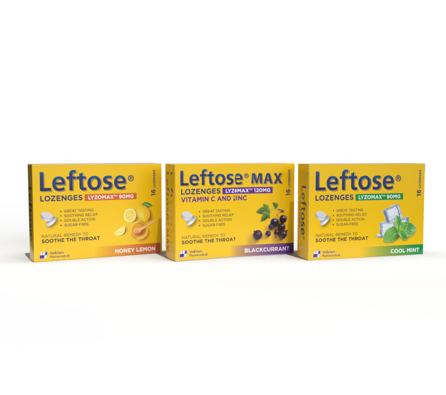 Delight your tired throat with the soothing relief that Leftose® lozenges provide. These sugar-free lozenges contain LyzoMAX™, a natural enzyme that helps soothe the throat. Available in 3 great tasting flavours, honey lemon, blackcurrant and cool mint.